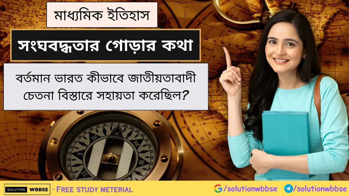 এই আর্টিকেলে আমরা মাধ্যমিক ইতিহাসের একটি গুরুত্বপূর্ণ প্রশ্ন “বর্তমান ভারত কীভাবে জাতীয়তাবাদী চেতনা বিস্তারে সহায়তা করেছিল?” নিয়ে আলোচনা করেছি। এই “বর্তমান ভারত কীভাবে জাতীয়তাবাদী চেতনা বিস্তারে সহায়তা করেছিল?” প্রশ্নটি মাধ্যমিক ইতিহাসের চতুর্থ অধ্যায় “সংঘবদ্ধতার গোড়ার কথা” -এর একটি গুরুত্বপূর্ণ প্রশ্ন। এই প্রশ্নটি মাধ্যমিক পরীক্ষায় এবং চাকরির পরীক্ষায় প্রায়ই দেখা যায়। আশা করি এই আর্টিকেলটি আপনাদের জন্য উপকারী হয়েছে। আপনাদের কোনো প্রশ্ন বা অসুবিধা থাকলে, আমাদের সাথে টেলিগ্রামে যোগাযোগ করতে পারেন, আমরা উত্তর দেওয়ার চেষ্টা করব। তাছাড়া, নিচে আমাদের এই পোস্টটি আপনার প্রিয়জনের সাথে শেয়ার করুন, যাদের এটি প্রয়োজন হতে পারে। ধন্যবাদ।