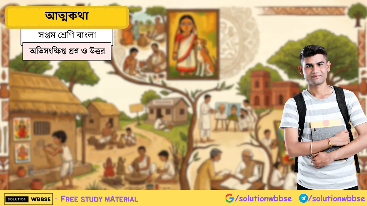 এই আর্টিকেলে আমরা সপ্তম শ্রেণির বাংলা বিষয়ের অন্তর্গত, রামকিঙ্কর বেইজ রচিত ‘আত্মকথা’ পাঠের কিছু অতিসংক্ষিপ্ত প্রশ্ন ও উত্তর নিয়ে আলোচনা করেছি। এই প্রশ্নোত্তরগুলো সপ্তম শ্রেণির শিক্ষার্থীদের পরীক্ষার প্রস্তুতির জন্য অত্যন্ত গুরুত্বপূর্ণ, কারণ বাংলা পরীক্ষায় এই ধরনের প্রশ্ন নিয়মিত আসে।