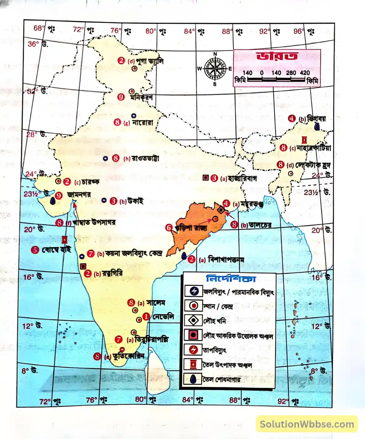 প্রদত্ত ভারতের রেখা মানচিত্রে নিম্নলিখিত বিষয়গুলি উপযুক্ত প্রতীক ও নামসহ চিহ্নিত করো।